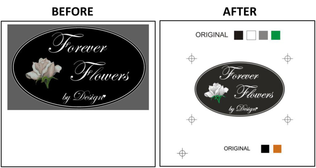 Ideal for logos and solid illustrations. We separate each color into its own layer/channel. We include trapping (choking and spreading) to ensure that even if your press shifts slightly, no white gaps appear between colors.